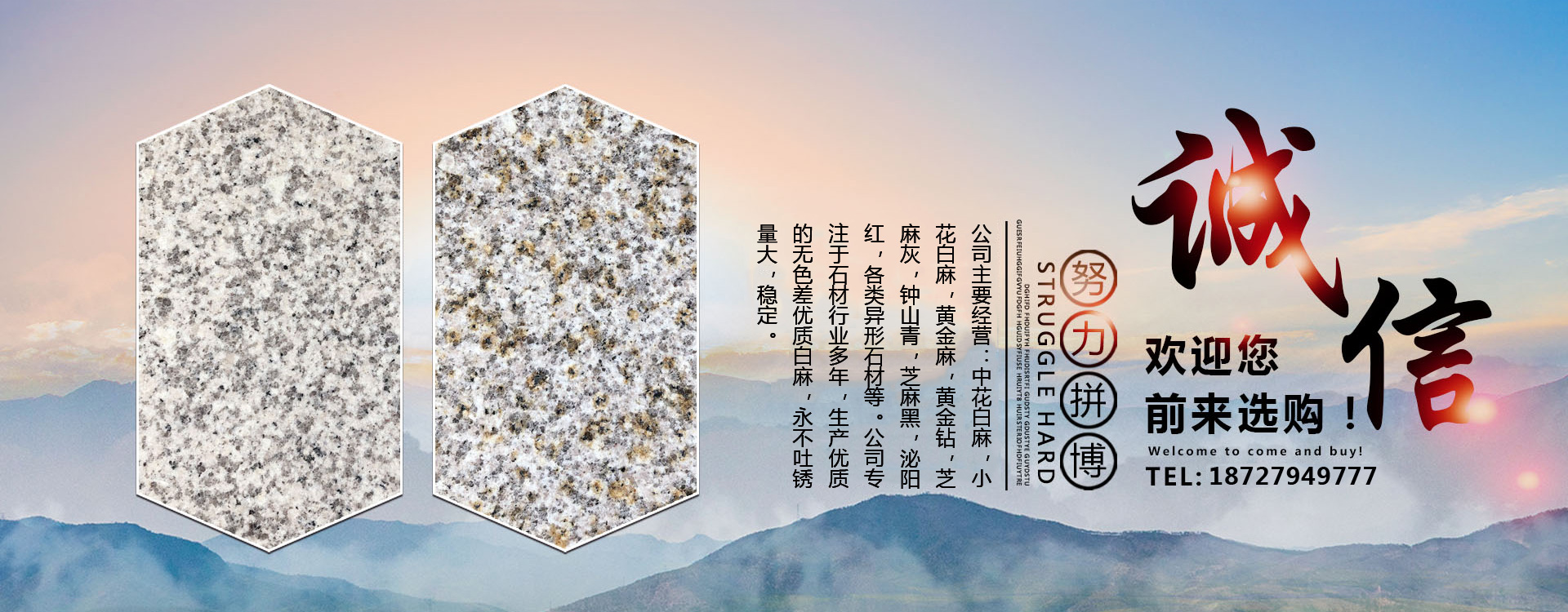 生產各樣規格的白麻,黃金麻,黃金鉆,芝麻灰,鐘山青,芝麻黑等,產品均色澤大方、紋理清晰,能滿足現代人“返璞歸真”的時尚追求,是現代建筑裝飾的理想產品。